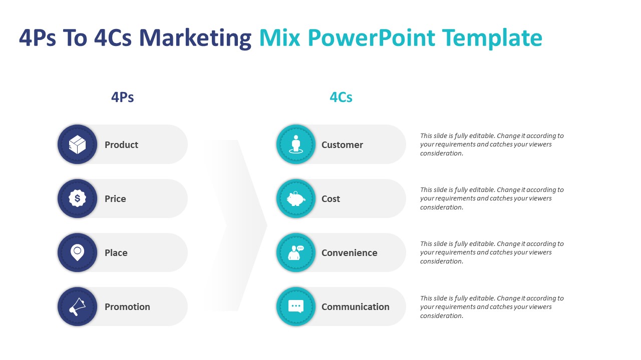 4Ps To 4Cs Marketing Mix PowerPoint Template