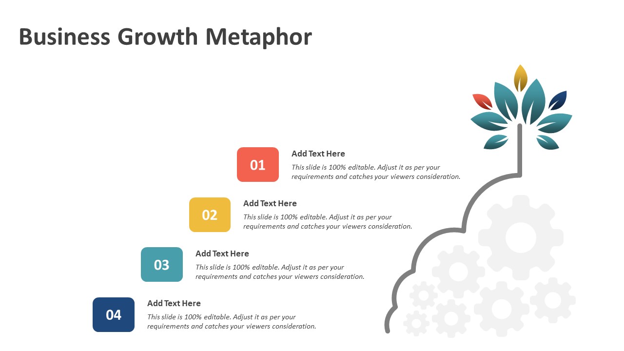 Elevate your presentations with the Business Growth Metaphor PowerPoint Template a fully customizable PPT design that visually represents business expansion, strategy, and success. Perfect for entrepreneurs, managers, and corporate teams, this template helps convey complex growth concepts clearly and professionally. Ideal for presentations targeting global audiences while remaining locally adaptable.