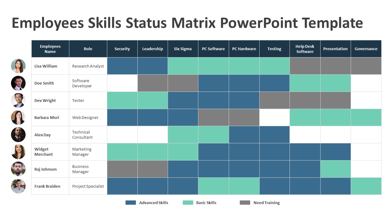 Employees Skills Status Matrix PowerPoint Template
