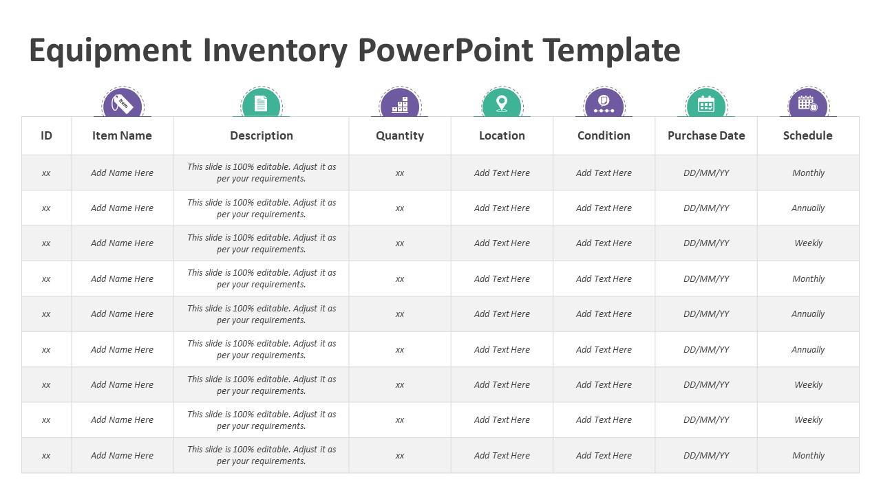 Be the first to review “Equipment Inventory PowerPoint Template”