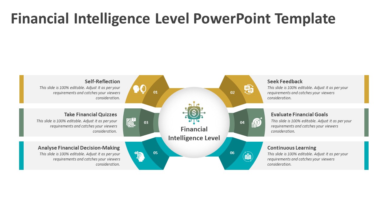 The Financial Intelligence Level PowerPoint Template is a professionally designed presentation crafted for finance professionals, consultants, educators, and business leaders. This fully customizable PPT slide helps you visually represent financial maturity levels, financial literacy frameworks, or performance benchmarking models with clarity and impact. Ideal for corporate meetings, investor presentations, financial training sessions, and strategy discussions, the template simplifies complex financial concepts into an easy-to-understand visual structure.