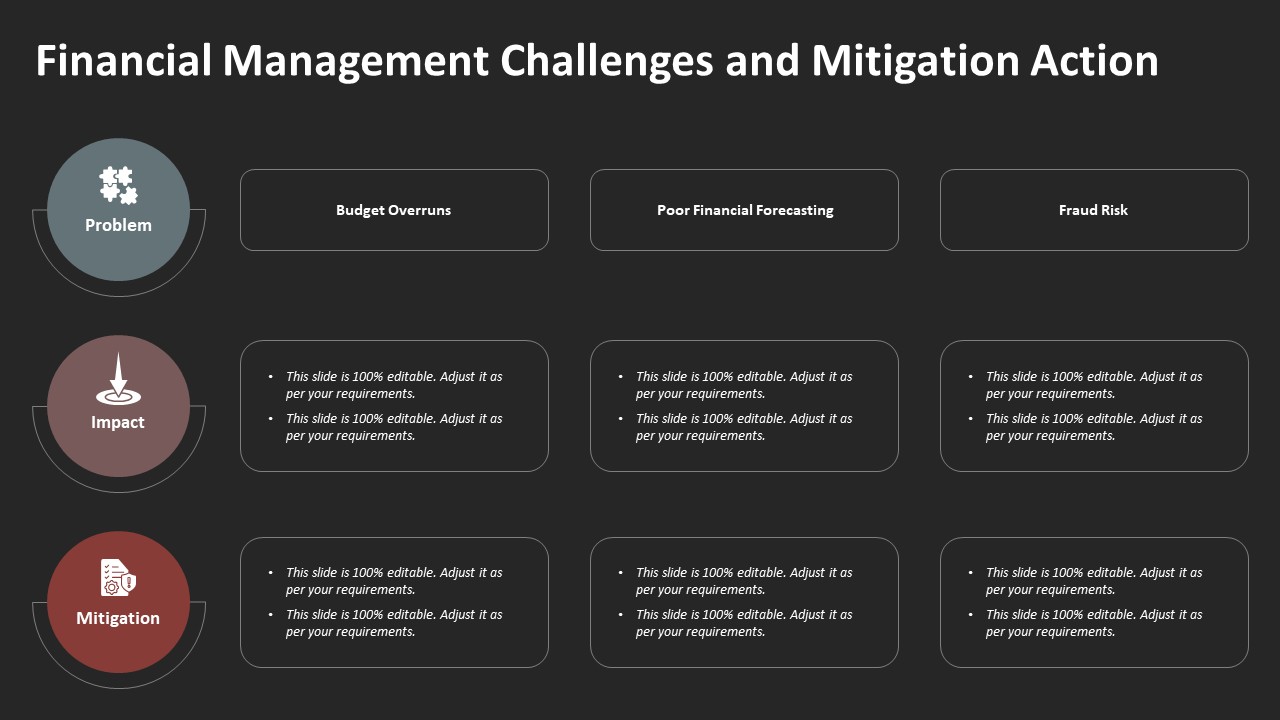 Financial Management Challenges and Mitigation Action PowerPoint Template