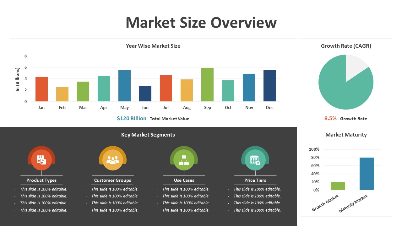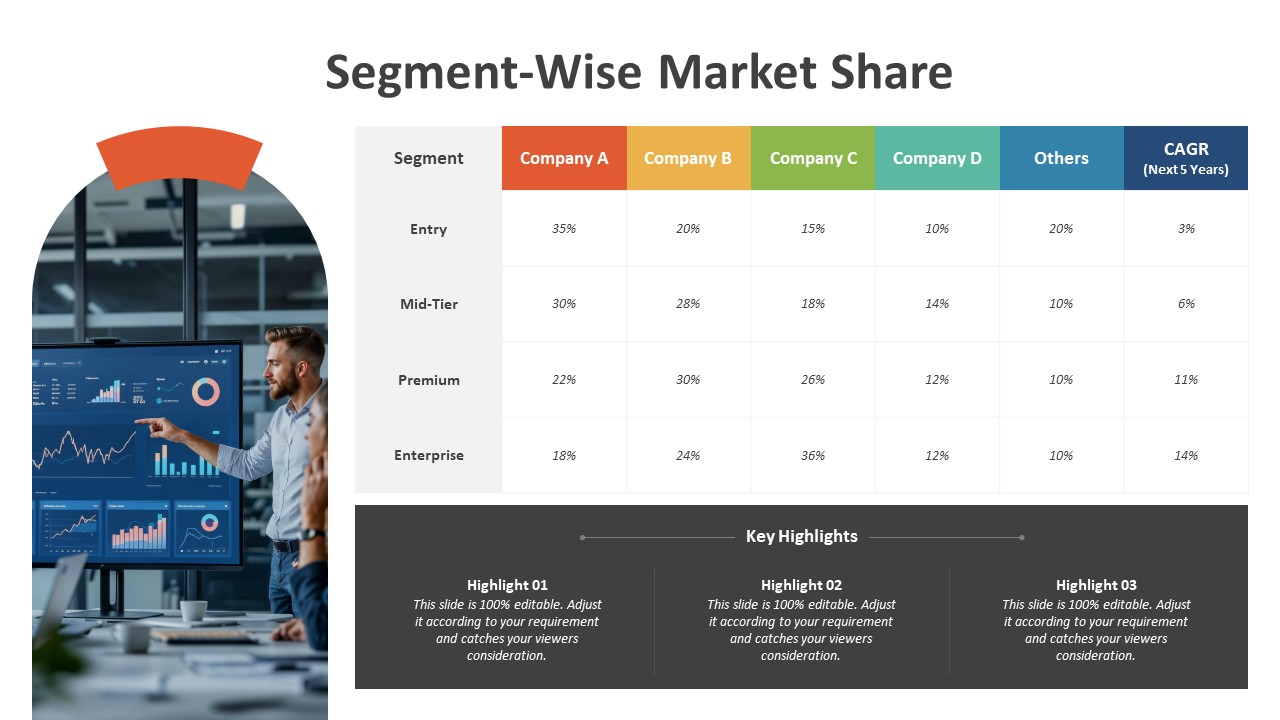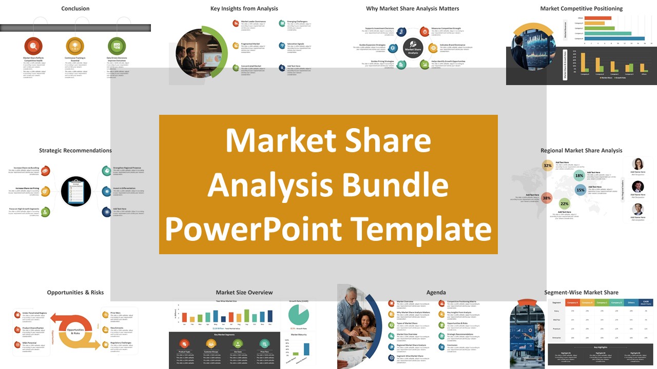 The Market Share Analysis Bundle PowerPoint Template helps businesses visualize competitive positioning, regional dominance, and segment-wise market share. Ideal for consultants, analysts, and executives, this ready-to-use deck simplifies data-driven storytelling for strategy reviews, investor meetings, and market research presentations.