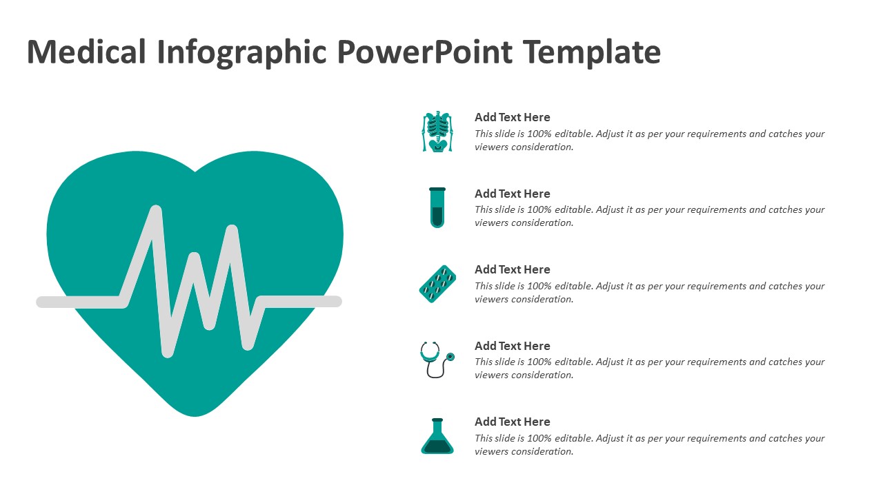 The Medical Infographic PowerPoint Template is a clean, professional PPT design created for healthcare presentations, medical education, and clinical reporting. It helps present complex medical data, patient statistics, research insights, and healthcare workflows in a clear, visually engaging format. The slide is fully customizable, allowing easy edits to colors, icons, text, and layouts to match hospital branding, academic needs, or corporate healthcare standards.